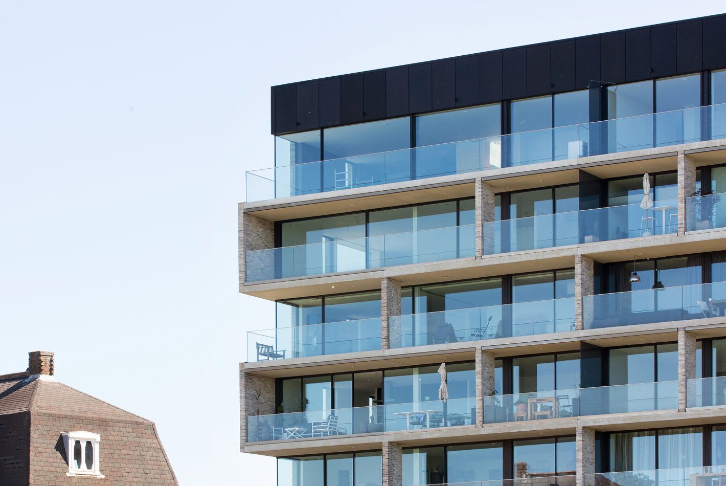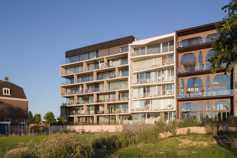 The building marks the exposed Northwestern corner of the Amstelkwartier, a former industrial site transformed into a housing area. Here, two urban scales are meeting – the extensive river waterfront landscape along the Amstel and the urban setting of the Amstelkwartier defined by new housing and railroad infrastructure. The architectural identity of the building facade reflects the encounter of both contextual conditions.