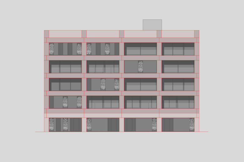 However, this evocation of rationalist Modernist principles is subverted by the Romanticist, painterly (‘sfumato’), imperfect quality of the reddish concrete panels, by the irregular arrangement of window partitioning within the concrete superstructure reflecting the individual apartments behind, and by the non-human inhabitation of the façade with its connotations of cultural temporality and decay.